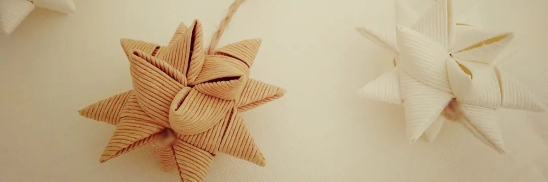 紙製の平たい帯状のものをハサミで切って貼ったり編んだりする紙バンドクラフト。